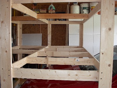 | This shows how the table is designed so that the car parks directly under the main portion of the table. I had a pretty small car at the time, and thougnt that I designed the table so that if I got a larger car the table will accomodate it. It didn't quite work out that way. | ![]() |