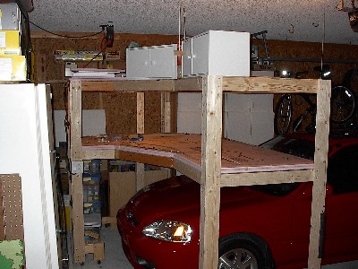 garage and both cars still had to fit in the garage as well. So I built the benchwork to fit over my car.
