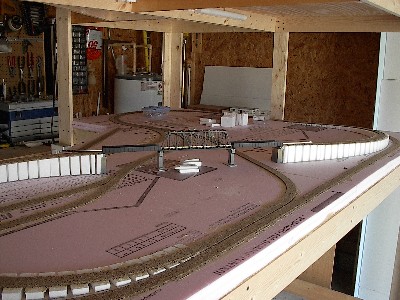 board down and began to put down the cork roadbed. I also wired in a master switch