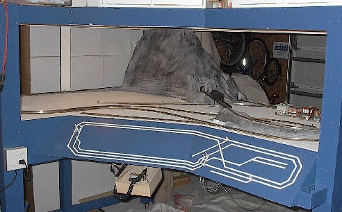 I started doing scenery with the town on the right of the layout and the mountain in